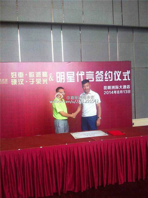 于榮光出席歐派龍點電動車形象大使簽約儀式