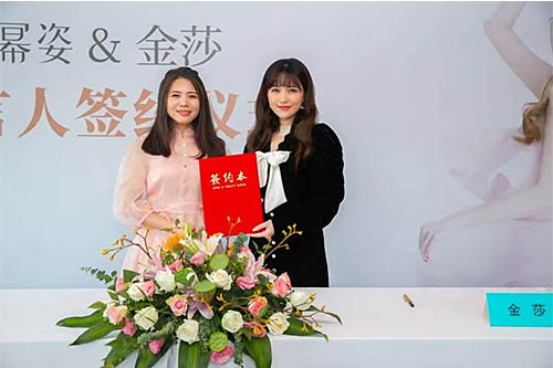 廣州嘉華明星經紀公司攜手甜美歌手金莎參加青島錦成品牌管理有限公司在杭州科技城康得思酒店舉行簽約儀式金莎正式成為【冪姿】 內衣品牌品牌的代言人。