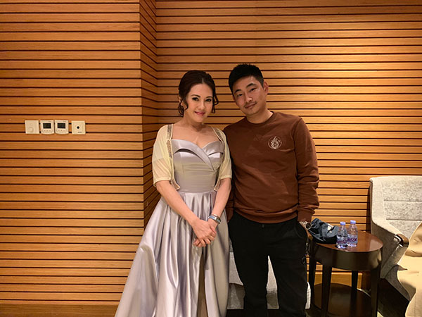 圖為李麗珍與經(jīng)紀(jì)人李志合影